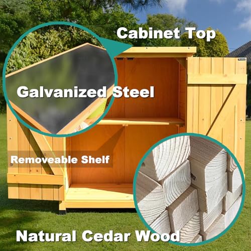 - SOLID WOOD CONSTRUCTION: Provides a durable and weather-resistant structure for reliable outdoor tool storage.