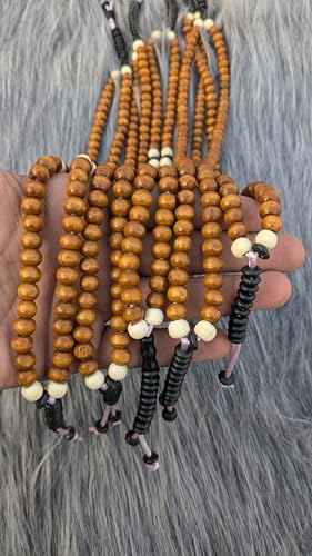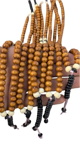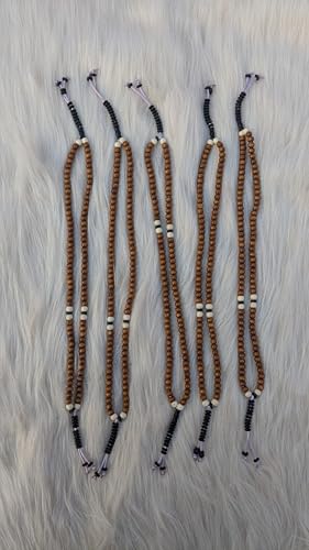 JAZZEEL - سبحة صلاة خشبية من جازيل، عبوة من 99 خرزة من اساور خشبية بلون بني للصلاة والتامل، مسبحة اسلامية بطول 30 سم مع عدادات للممارسة الروحية