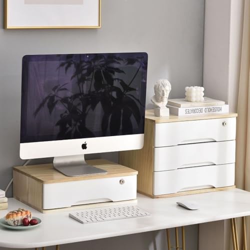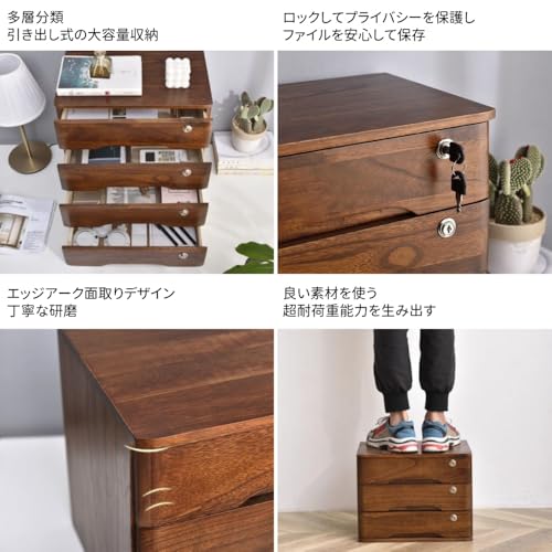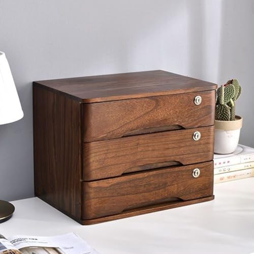 JAZZEEL - صندوق تخزين خشبي من جازيل، خزانة ملفات بقفل مع مفاتيح، ادراج متعددة، طبيعي، منظم مستندات بسعة كبيرة لسطح المكتب، حامل ادوات مكتبية صغيرة، صندوق آمن.
