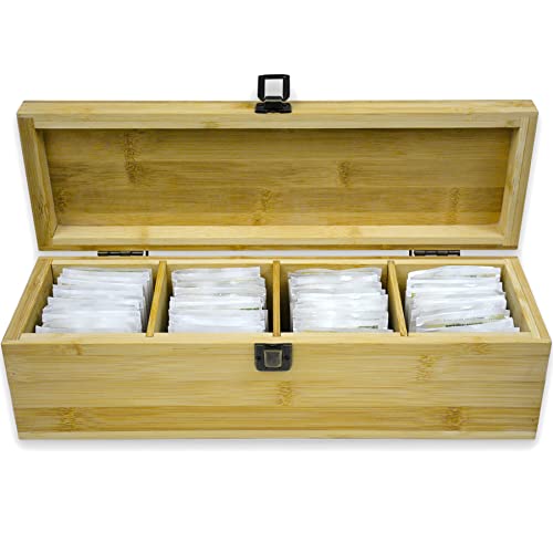 - ADJUSTABLE CUBBIES: This tea organizer features removable dividers, allowing you to adjust the size of the four compartments. This flexibility lets you accommodate different-sized tea bags, loose leaf tea tins, or other kitchen accessories with ease.