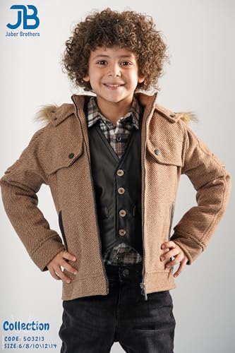 JB Jaber Brothers - Boys’ 4-Piece Winter Outfit – Jacket, Leather Vest, Shirt & Jeans Set
