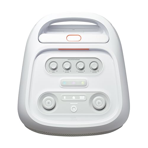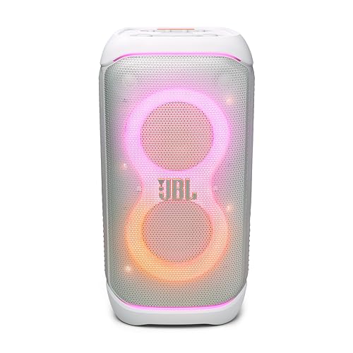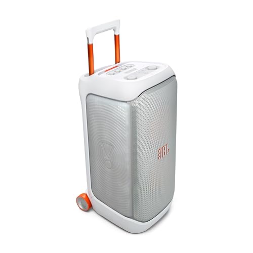 JBL - JBL PartyBox Stage 320 Portable Bluetooth Speaker, 240W, 18 Hours Max Playing Time, Splash Proof, Dual Mic & Guitar Inputs, Multi Speaker Connection, With Wheels, White |1 year manufacturer warranty