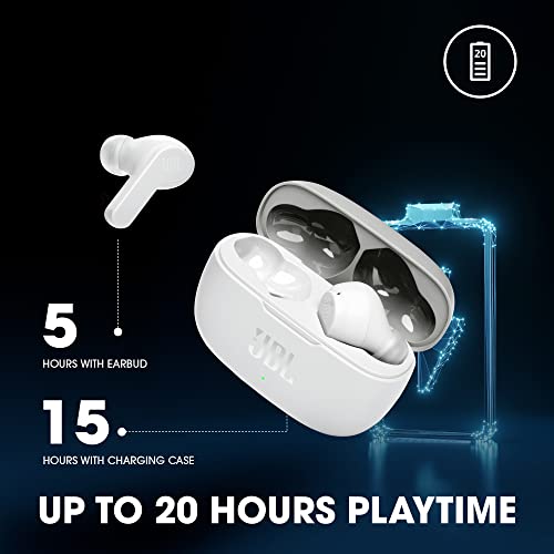 - وقت تشغيل يصل إلى 20 ساعة: مع وجود 5 ساعات في سماعات الأذن و15 ساعة في العلبة، لن يسقط جهاز JBL Wave 200TWS حتى تفعل ذلك.