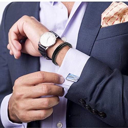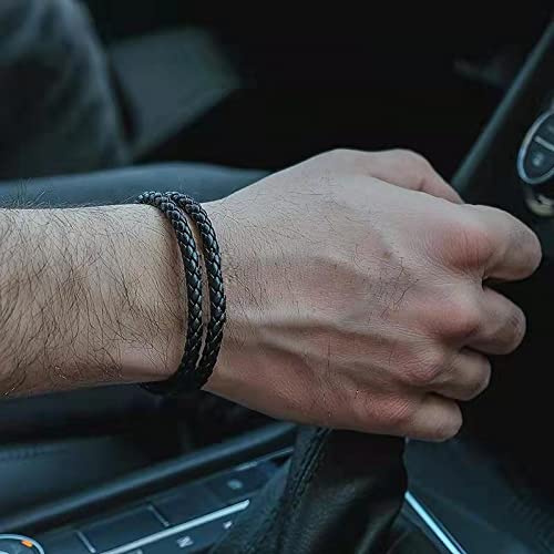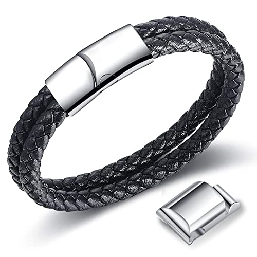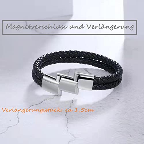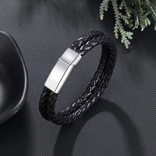 Jbniuay - Men's Stainless Steel Braided Leather Bracelet with Magnetic Clasp (Black, 21cm)