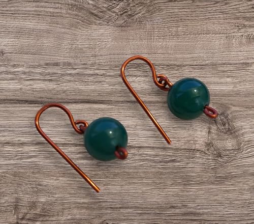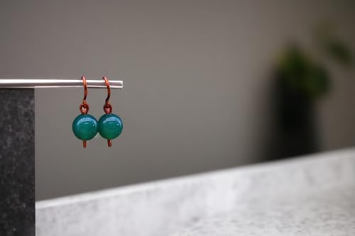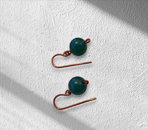 (JC) jimmycom - اقراط متدلية قصيرة مطلية بسلك نحاسي واحجار، اقراط قصيرة، اقراط للنساء، اقراط للنساء، اقراط، اقراط اقراط فريدة من نوعها، اكسسوارات اقراط نحاسية مطلية (العقيق البرازيلي الاخضر)