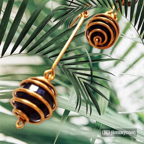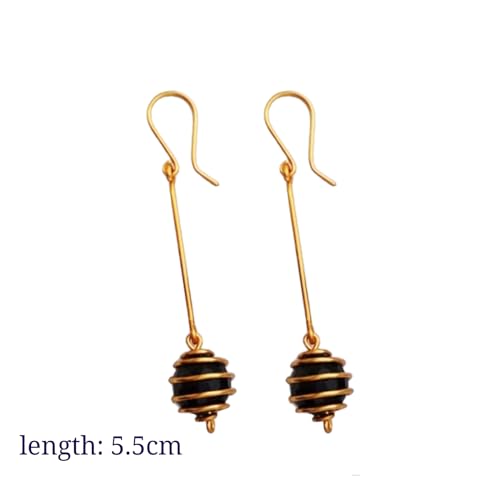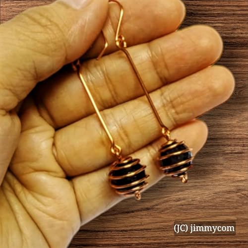 (JC) jimmycom - اقراط متدلية طويلة مطلية بالنحاس والاحجار من جيميكوم للنساء، اقراط للنساء، اقراط للنساء، اقراط، اقراط اقراط فريدة من نوعها، اكسسوارات اقراط نحاسية مطلية (عقيق اسود)