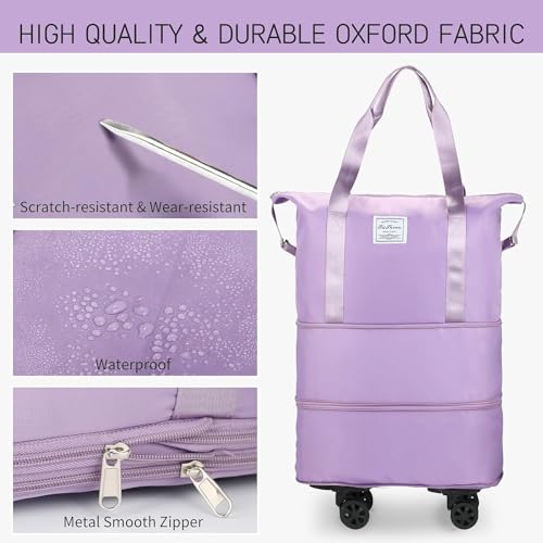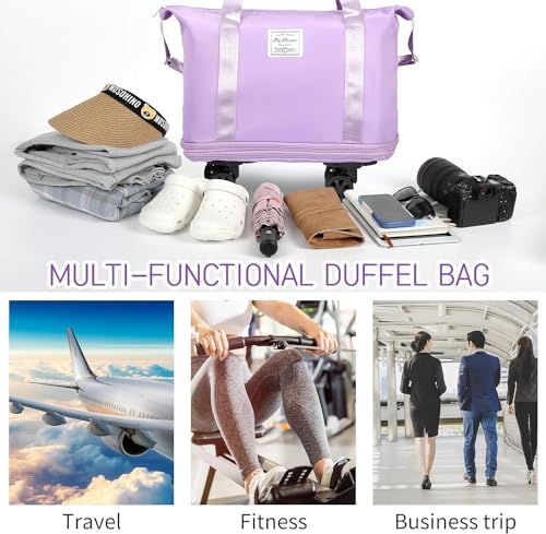 JD FRESH - JD Fresh Duffel Trolley Bags for Travel,Luggage Bags for Travel,Rolling Duffle Bag with Wheels,Travel Bags for Luggage Trolley,Expandable Foldable Duffle Bag with Wheels - Taro Purple