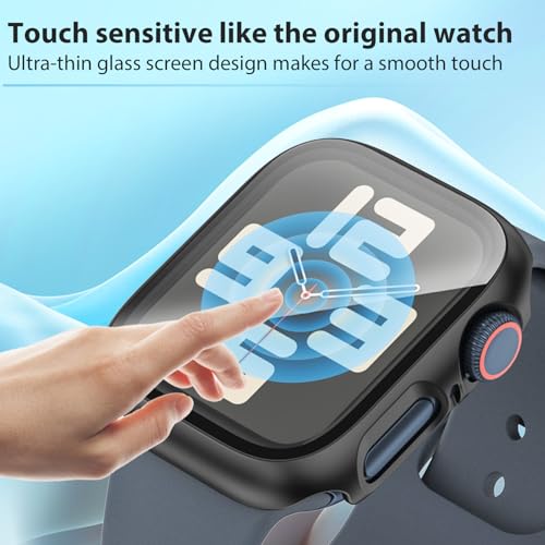 - [High Sensitive Touch]: High transparency tempered glass screen protector, presenting the original clear picture quality and high speed response.Slim design protective cover,high quality touch.Match with different color apple watch straps to make your apple watch stand out!