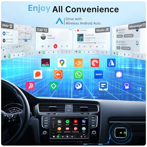 - 【محول لاسلكي جي دي جي اندرويد تلقائي للسيارة】 قم بترقية نظام اندرويد اوتو السلكي بسهولة ليكون لاسلكيًا واستمتع بحرية نظام اندرويد اوتو اللاسلكي. ما عليك سوى توصيل محول اندرويد اوتو بمنفذ USB-C/USB في سيارتك، ويمكنك الاستمتاع بوظيفة اندرويد اوتو الكاملة والحفاظ على تشغيل السيارة الأصلي، مثل التنقل وتشغيل الموسيقى والمساعدة الصوتية والمكالمات الهاتفية وما إلى ذلك (متوافق فقط مع اندرويد اوتو وليس لأي نظام آخر).
