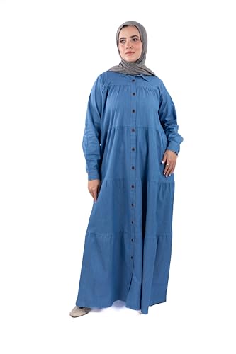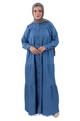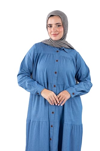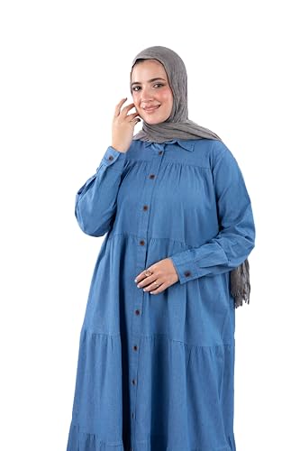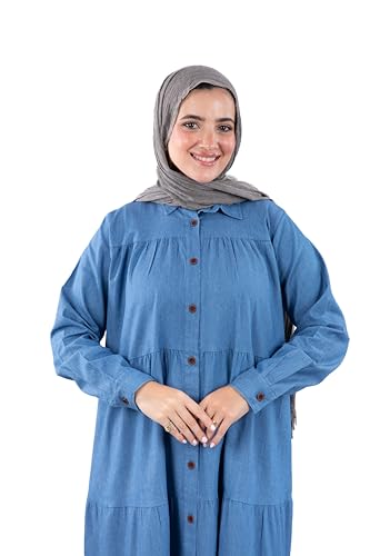 Pinky - Jeans Pleated Flowy Dress For Women with Long sleeves