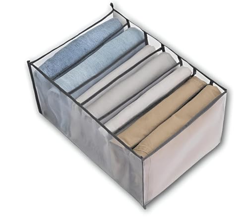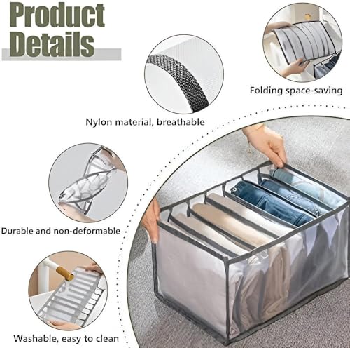 - This closet organizer features a mesh design with seven compartments, ideal for neatly separating and stacking jeans, pants, underwear, scarves, t-shirts, and more, maximizing space efficiency in drawers or wardrobes.