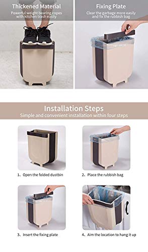 - Easy to install, Just attach the compact folding trash can to any cabinet drawers or doors. When you cooking fresh food, slicing and dicing things, you don't need to open and close cabinet door constantly with your wet hands, compared to the trash bin under the sink.