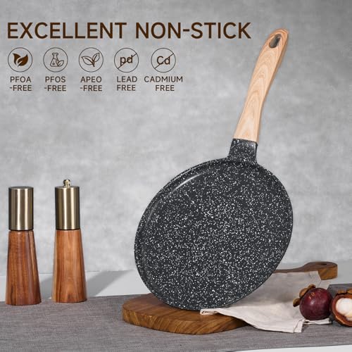 JEETEE - JEETEE Crepe Pan Nonstick, 9.5 Inch Comales Para Tortillas Griddle Pan for Stove Top, Granite Coating Flat Pancake Pan Dosa Tawa, PFOA FREE and Induction Compatible (Grey)