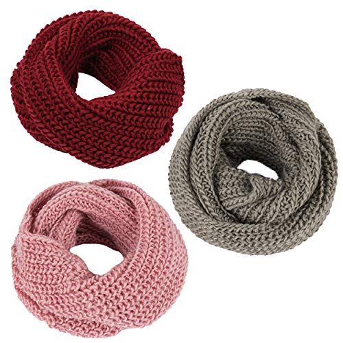 Jemis - جيهمز وشاح شتوي محبوك فائق النعومة بتصميم انفينيتي للنساء، عبوة من 3 قطع، بني وزهري واحمر نبيذي، مقاس واحد