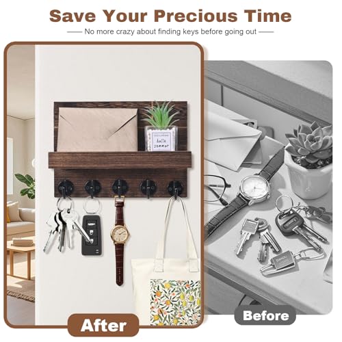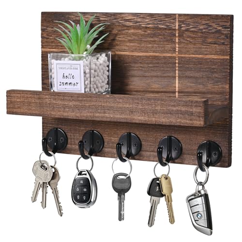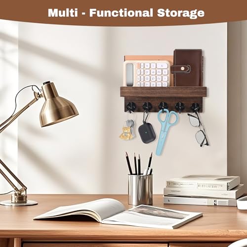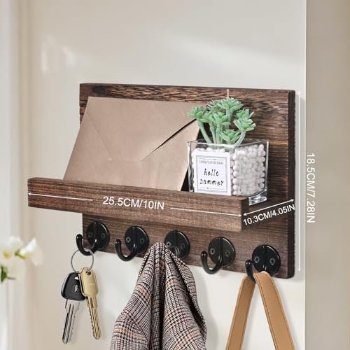 Jemyxhw - حلقة مفاتيح جدارية، حامل معطف وصندوق مفاتيح مزخرف مع رف مع 5 خطافات مفاتيح، لغرفة المعيشة والحمام والمطبخ والمدخل والرواق من جيميكسو (بني)