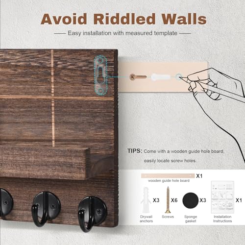 - سهلة التجميع في 3 دقائق: حامل المفاتيح الجداري سهل التجميع ويأتي مع جميع الأدوات اللازمة (المسامير والمسامير المسطحة ودليل الحفر الدقيق والتعليمات التفصيلية). لا يتطلب أي مهارات خاصة.