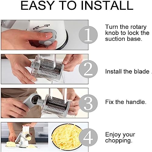 - Excellent design: simple hand crank rotates and produces perfectly grated ingredients, easy to use and clean. The suction base provides better grip and stability on a flat surface to ensure it does not slip off the desk