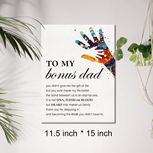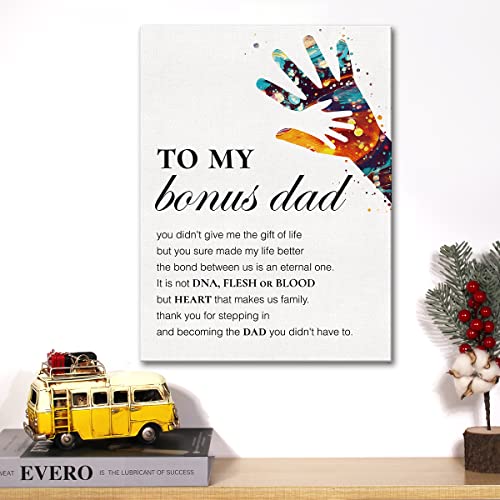 JerLoe - جيروي لوحة فنية جدارية قماشية تحفيزية بعبارة «Step Dad Thank You for Stepping in» مطبوعة للمنزل والمكتب هدية مؤطرة مقاس 12 × 15 انش متعدد