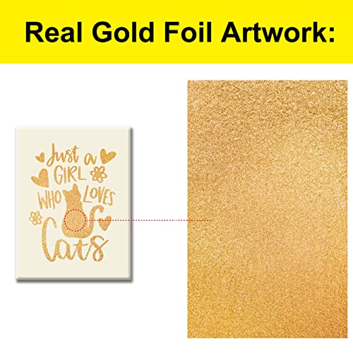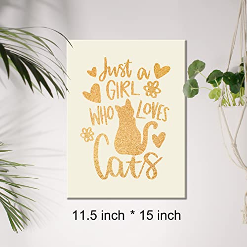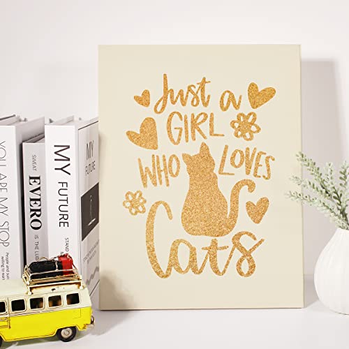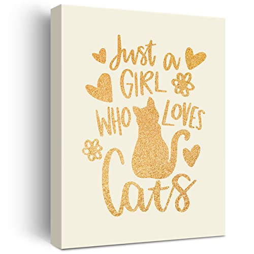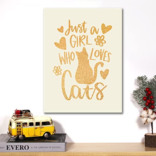 JerLoe - جيروي لوحة فنية جدارية من قماش القصدير الذهبي لمحبي القطط مطبوع عليها عبارة «Just a Girl Who Loves Cats» لوحة قماشية مؤطرة لديكور المنزل مقاس 12 × 15 انش