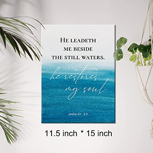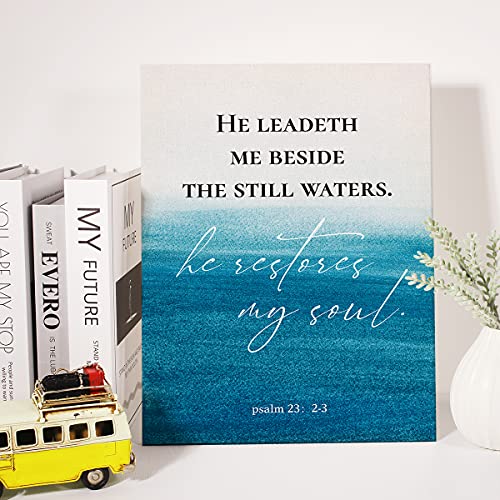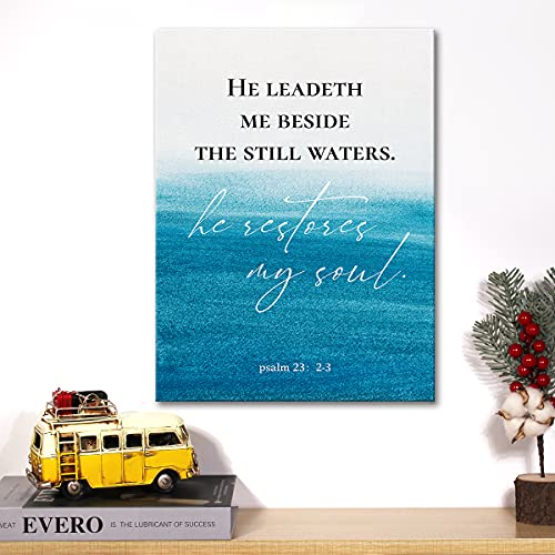JerLoe - JerLoe Christian Canvas Wall Art He Leadeth Me Beside the Still Waters Psalm 23 Canvas Print Bible Verse Scripture Canvas Painting Home Wall Decor Framed Gift 12x15 Inch