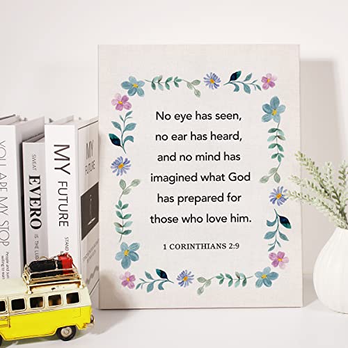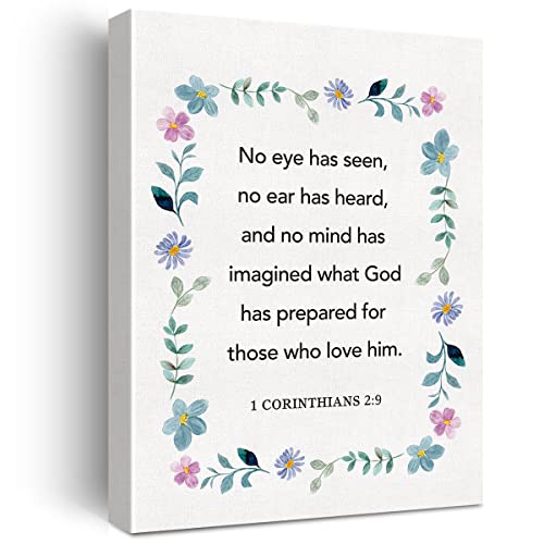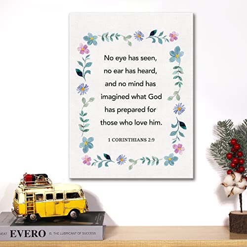 JerLoe - JerLoe Christian Canvas Wall Art Motivational 1 Corinthians 2:9 No Eye Has Seen Canvas Print Scripture Bible Verse Painting Home Wall Decor Framed Gift 12x15 Inch