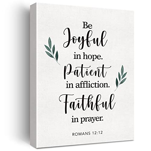 JerLoe - JerLoe Christian Canvas Wall Art Motivational be joyful in Hope Romans 12:12 Canvas Print Scripture Bible Verse Painting Home Wall Decor Framed Gift 12x15 Inch