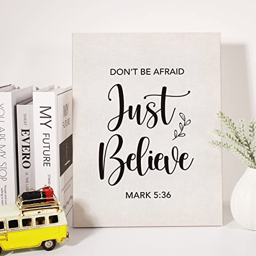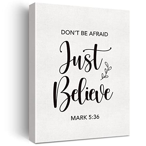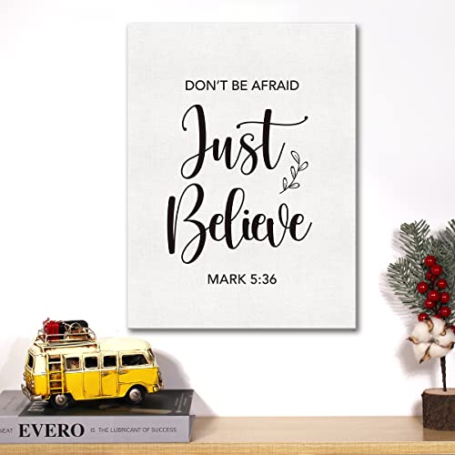 JerLoe - لوحة فنية جدارية من القماش بعبارات تحفيزية مسيحية «مارك Don`t be afraid just Believe 5:36» مطبوعة بأية من الكتاب المقدس تستخدم كديكور لحائط المنزل و هى لوحة مزودة بإيطار تصلح كهدية مقاس 30 × 38 سم
