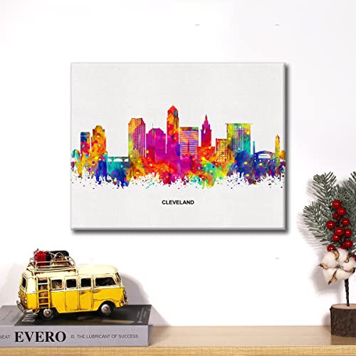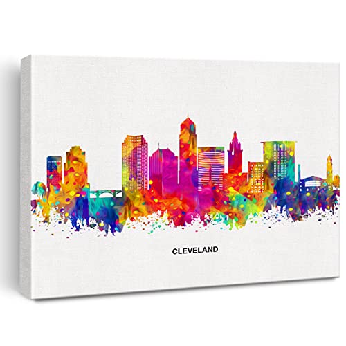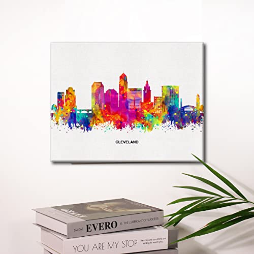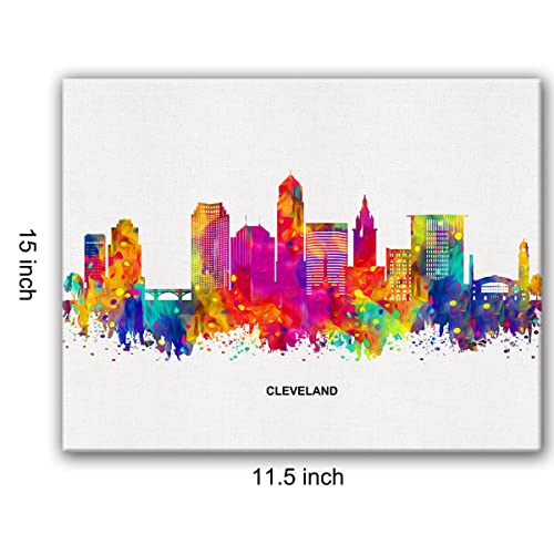 JerLoe - JerLoe Cityscape Art Canvas Wall Art Modern Abstract Colorful Cleveland Skyline Canvas Print Cleveland Ohio Painting Office Home Wall Decor Framed Gift 12x15 Inch