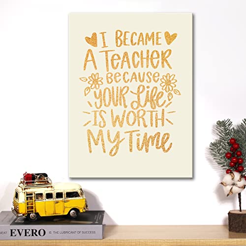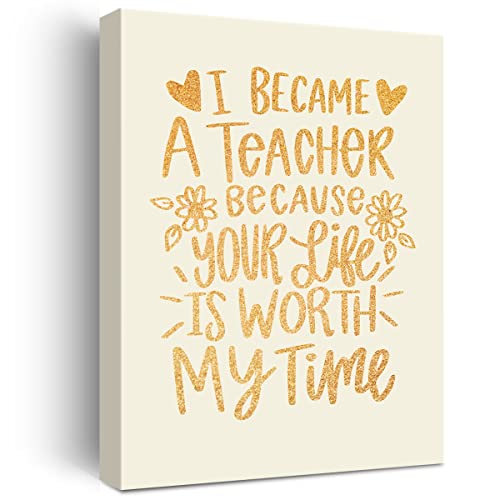 JerLoe - جيروي لوحة فنية جدارية من الفويل الذهبي بطبعة عبارة «Your Life is Worth My Time» لوحة قماشية مؤطرة لديكور المنزل مقاس 12 × 15 انش