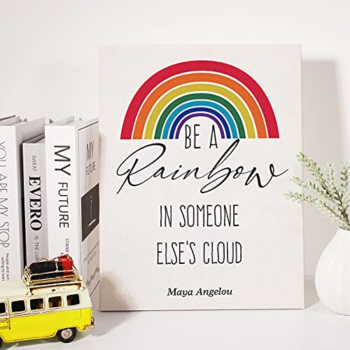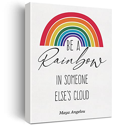 JerLoe - JerLoe Inspirational Canvas Art Motivational Rainbow Cloud Canvas Print Positive Wall Decor Framed Gift 12x15 Inch