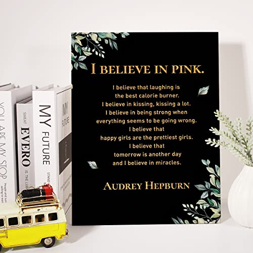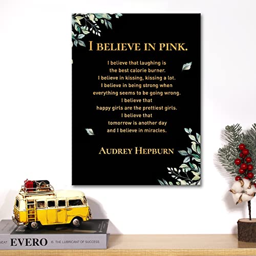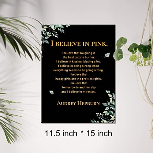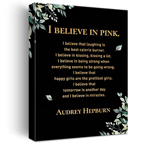 JerLoe - JerLoe Inspirational Gold Foil Canvas Wall Art Positive I Believe in Pink Quote Print Framed Canvas Painting Artwork Home Decor Gifts 12x15 Inch