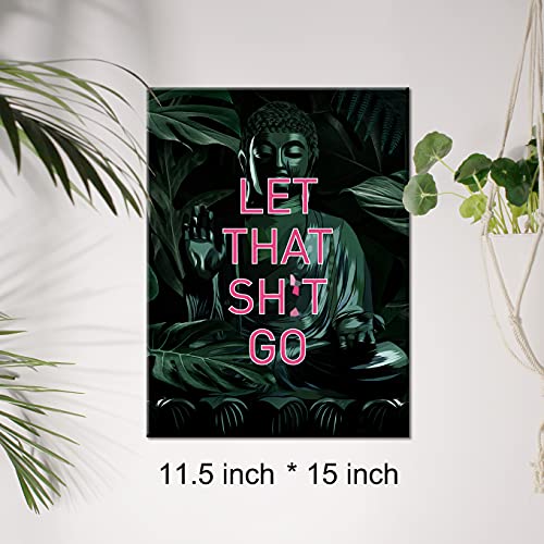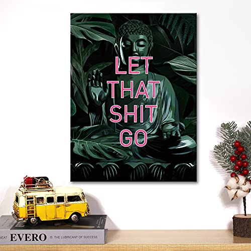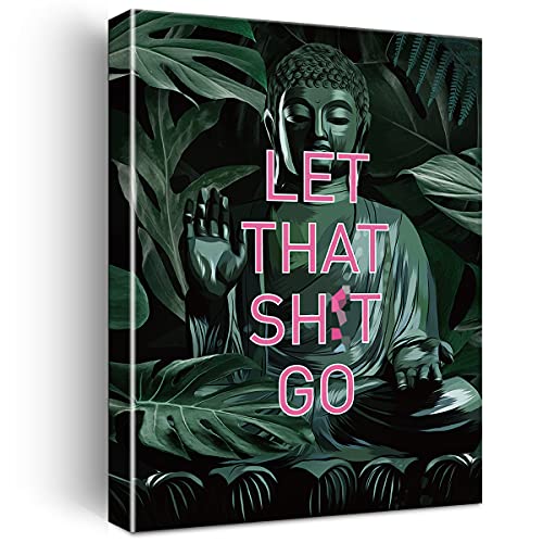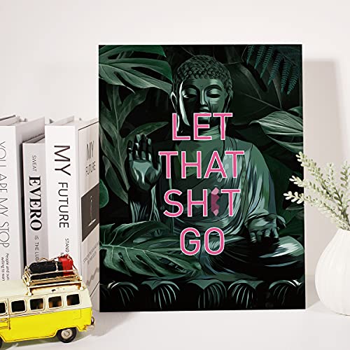 JerLoe - لوحة فنية جدارية قماشية مطبوعة بعبارة "Let That Go" بتصميم بوذا روحي تحفيزي لليوجا، لوحة قماشية مطبوعة بشكل إيجابي للمكتب والمنزل، ببرواز من جيروي، مقاس 30 × 38 سم