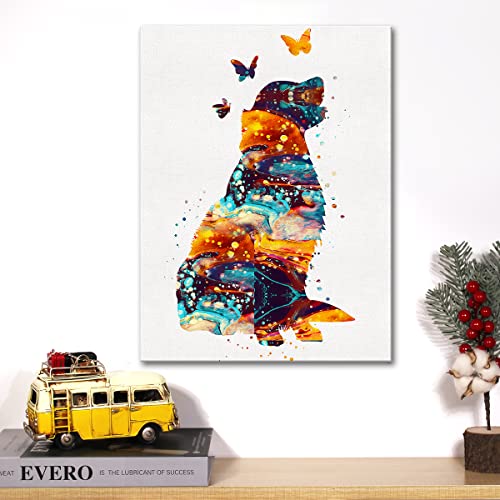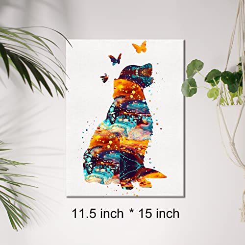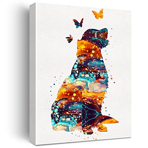 JerLoe - JerLoe Watercolor Golden Retriever Dog Canvas Wall Art Pet Puppy Dog Butterfly Canvas Print Painting Poster Wall Decor Framed Dog Lovers Gifts 12x15 Inch
