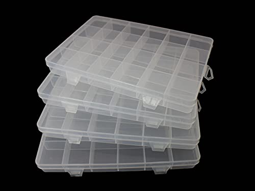 JESEP YONG - 4packs Plastic Organizer Box 24 Grids Clear Storage Container Jewelry Box with Fixed Dividers for Beads Art DIY Crafts Jewelry Fishing Tackles (4pcs 24 Grids Box)
