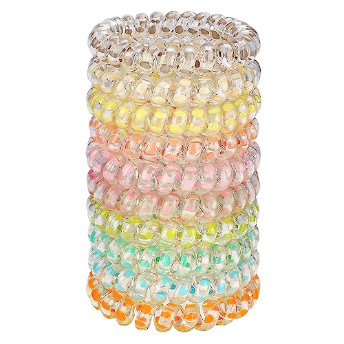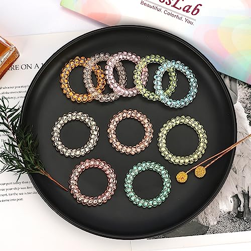 JessLab - JessLab Spiral Hair Bands, 10pcs Assorted Trace Free Spiral Hair Bands, Cute Plastic Spool Ponytail Holders, No-Damage Hair Accessory for Women and Girls, Transparent Dot