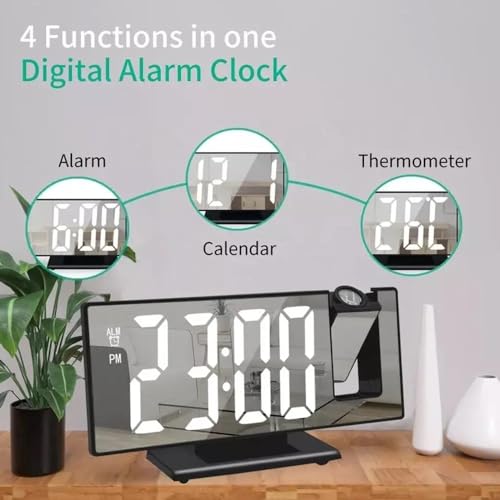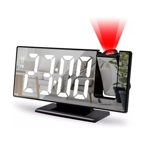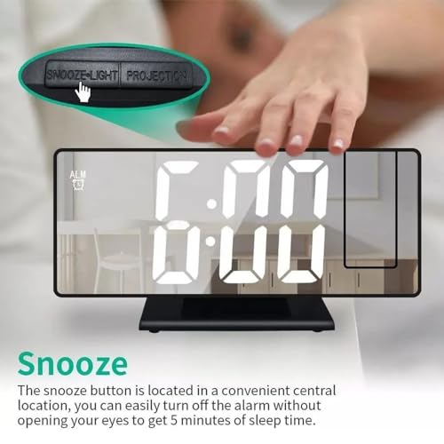 - 【Large LED Display & Sleep Function】- The overhead projector alarm clock features a large 7.8 inch mirror screen with large characters to make it easy to read the time. You can also set intervals: Monday to Friday, Monday to Saturday, Monday to Sunday. In addition, the snooze function allows you to sleep 5 minutes longer.