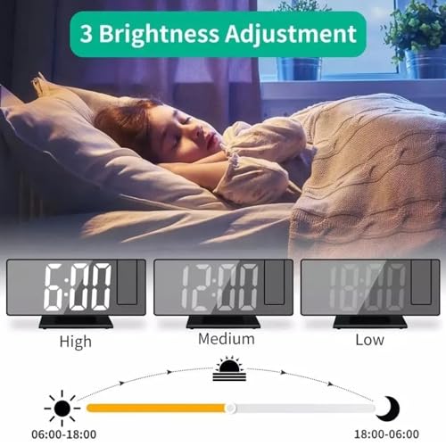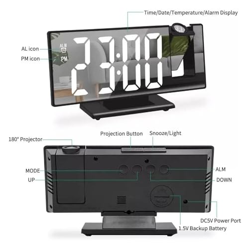- 【Projection + 180° Rotation】- Projection alarm clock features a 180° adjustable projection design (90° to -90°), making it easy to read in bed at night without sleep or glasses. (The brightness of the projection can be adjusted in two levels) Note: the projection alarm clock can only be projected to the back of the alarm clock; if projected forward, the numbers will be reversed.