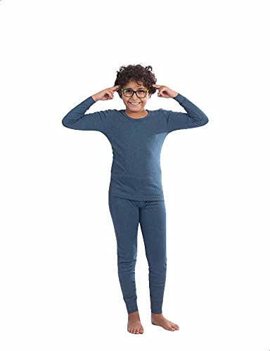 Jet - Jet Plain Long Sleeves Round Neck T-shirt with Elastic Cuff Pants Underwear Set for Boys - Heather Navy, 16 Years