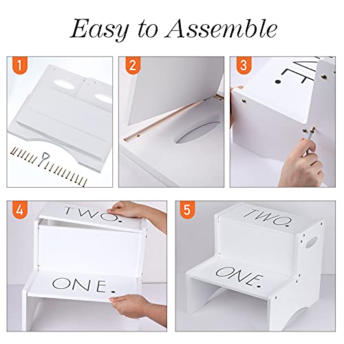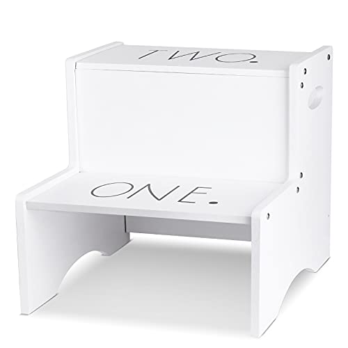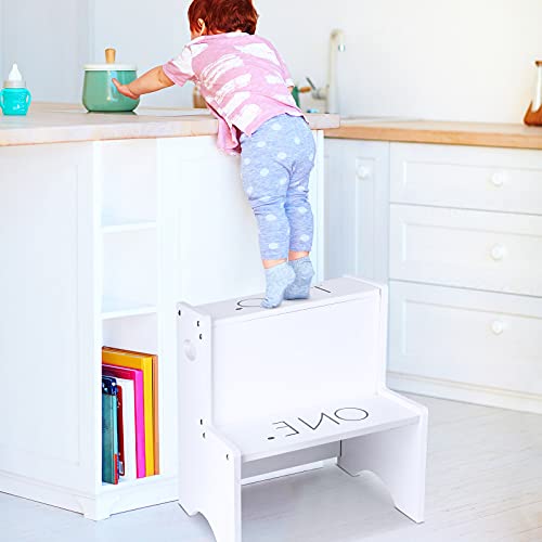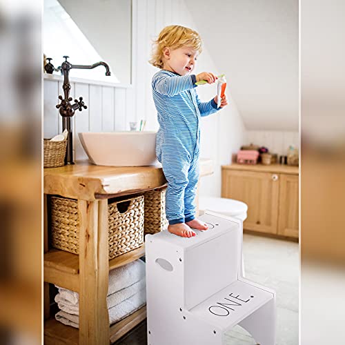 Jetec - جيتيك مقعد خشبي بدرجتين للاطفال بدرجتين بلون ابيض مع مقابض، مقعد خشبي مزدوج الارتفاع للاطفال الصغار، حامل درج خشبي صغير لغرفة المطبخ