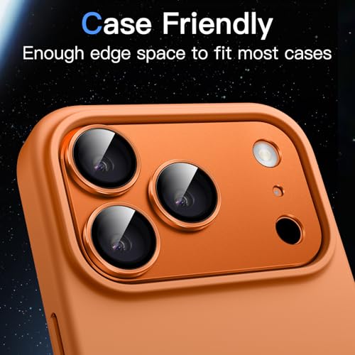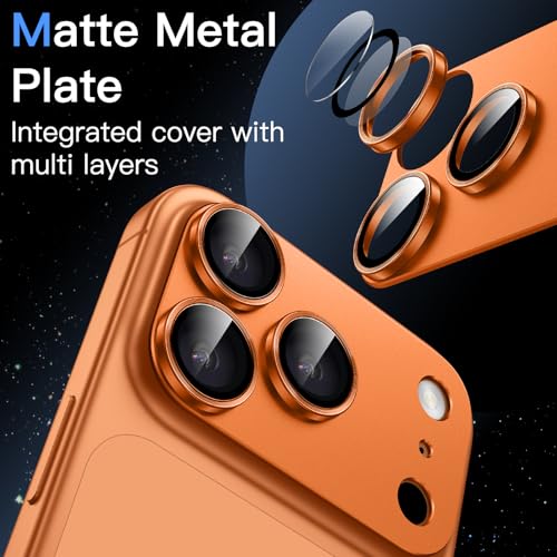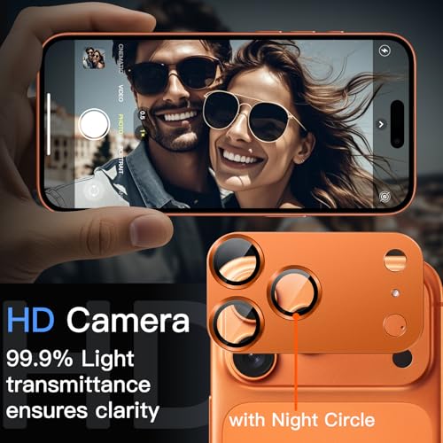 JETech - واقي عدسة الكاميرا لموبايل آيفون برو ماكس 6.9 بوصة من جيتك، حلقة من الزجاج المقوى بتغطية كاملة بدرجة صلابة 9، لوحة معدنية غير لامعة، مناسب للجراب، 1 قطعة (لون برتقالي)
