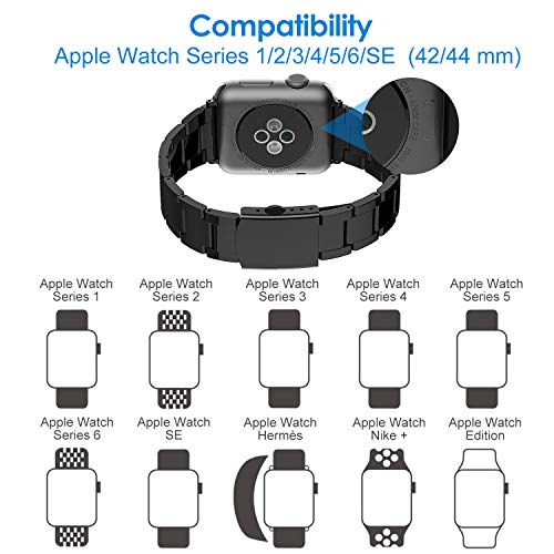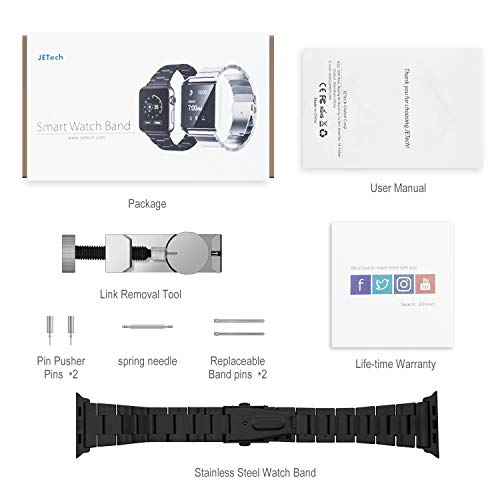 JETech - JETech Replacement Band for Apple Watch 42mm Series 1 2 3 with Stainless Steel Metal Clasp, Black