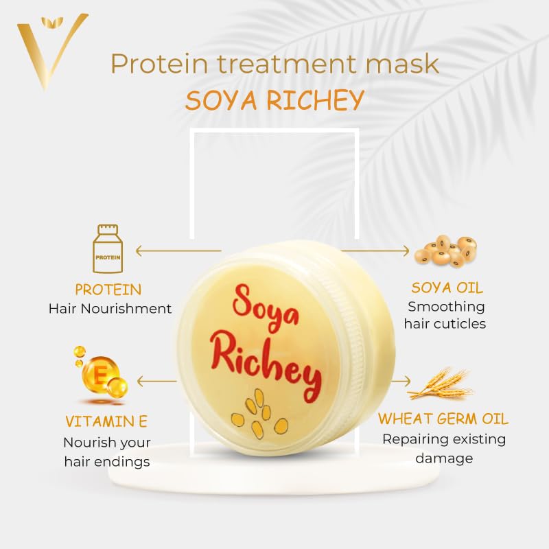 - جيفان قناع الشعر المعالج ببروتين الصويا ريتشي لجميع أنواع الشعر - بي يلو فانيليا 50 مل