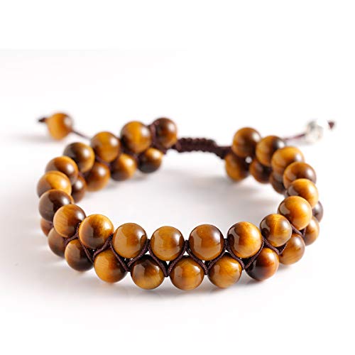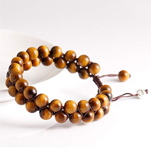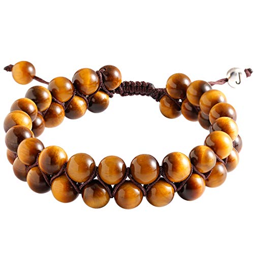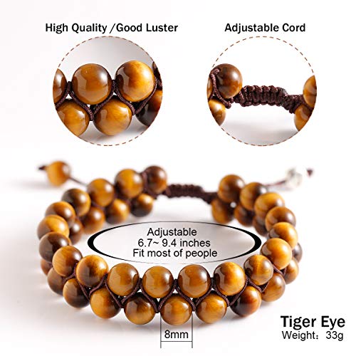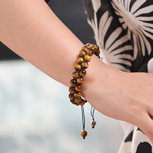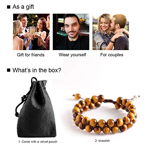 Jewboo - Yellow Tiger eye Lava Rock Bracelet Healing Crystal Adjustable Unisex Yoga Bracelet Double Beads 8mm Couples
