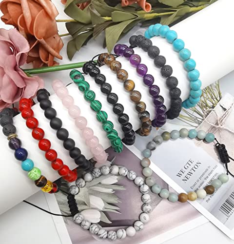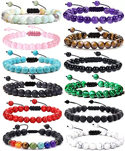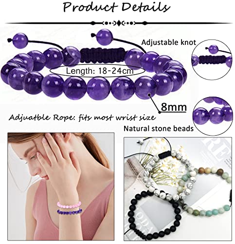 Jewdreamer - سوار احجار كريمة 8 ملم للرجال والنساء من جودريمر من 12 قطعة من سوار قابل للتمدد من خرز الكريستال للشفاء والعلاج من الجمشت شبه الكريم للجنسين