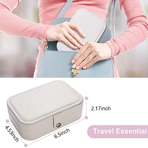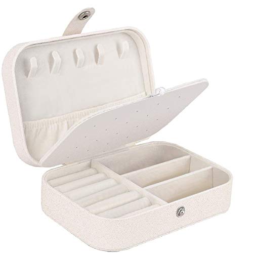 Generic - علبة مجوهرات صغيرة للنساء، مناسبة لحمل الاكسسوارات في السفر - ابيض ذهبي، جلد صناعي