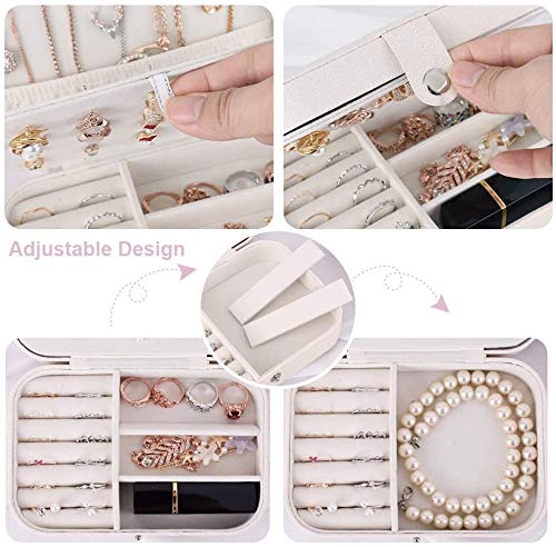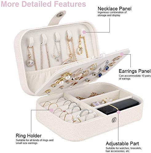 - حجم صغير ولكن سعة كبيرة: منظم المجوهرات صغير (6.50 انش × 4.53 انش × 2.17 انش)، فقط 8.8 اونصة، محمول وخفيف الوزن. إنه صندوق مجوهرات مثالي للسفر.