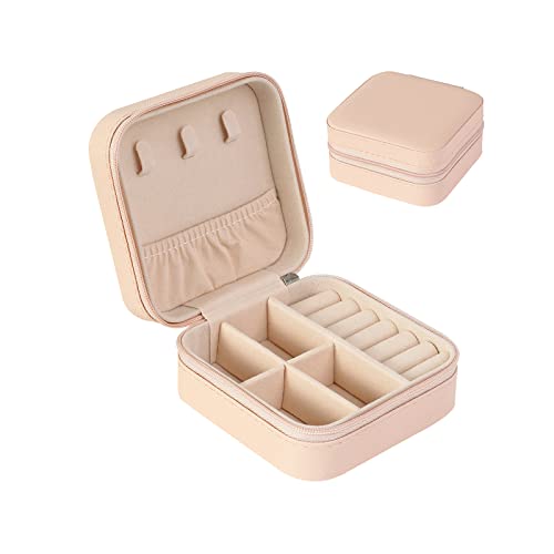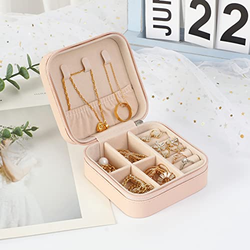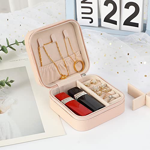 Spaceshoop - صندوق مجوهرات منظم للسفر، شنطة تخزين مجوهرات صغيرة للخواتم والحلقان والسلاسل والأساور، علب هدايا للبنات والنساء (بينك)