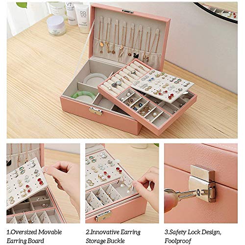 Ykgutilu - Jewellery Box,Travel Jewellery Case,Jewellery Box Organiser for Women Girls,2 Layers PU Leather Large Jewelry Storage Case Removable Compartment for Necklace Earrings Rings Bracelets (pink)