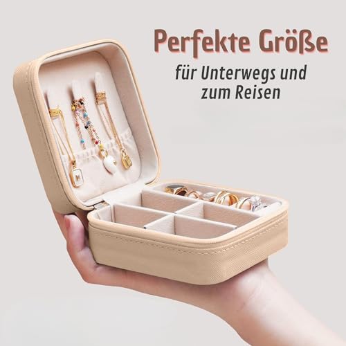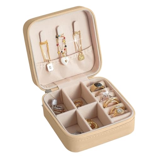 EVEMATE - Jewellery Box Travel - Jewellery Storage Small Portable for Women & Girls - Jewellery Box - Travel Case for Rings, Earrings, Bracelets and Necklaces (Beige)