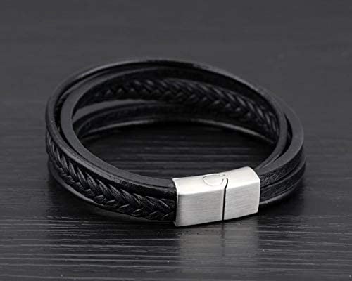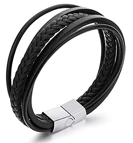 JewelOra - JewelOra MPE-1094 Black Genuine Cow Leather Jewelry Bracelet For Men